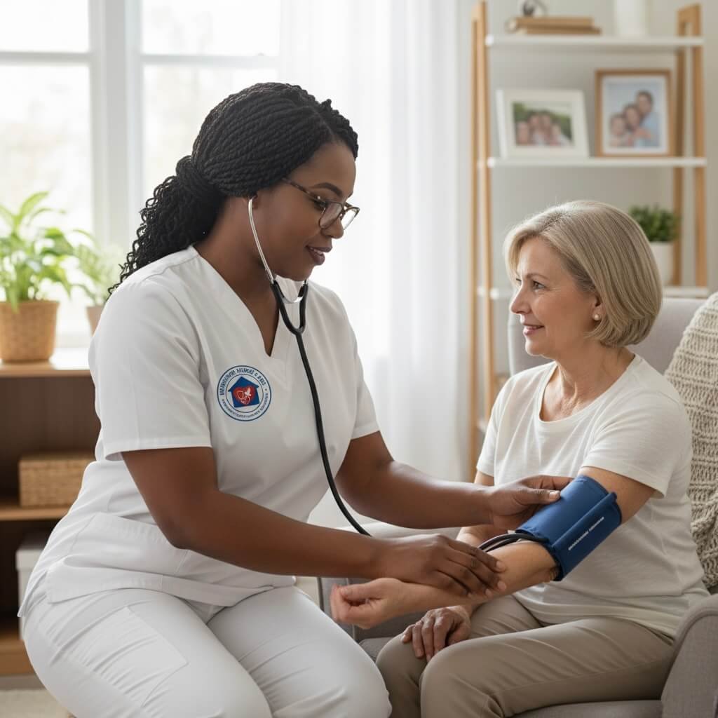 Description: Take control of your cardiovascular health with dedicated, in-home nursing support. Our RN provides accurate blood pressure monitoring, reviews medication efficacy and side effects, and offers personalized education on lifestyle and dietary choices to help you achieve and maintain healthy blood pressure levels. We clarify doctor’s instructions and empower you with knowledge to prevent complications.